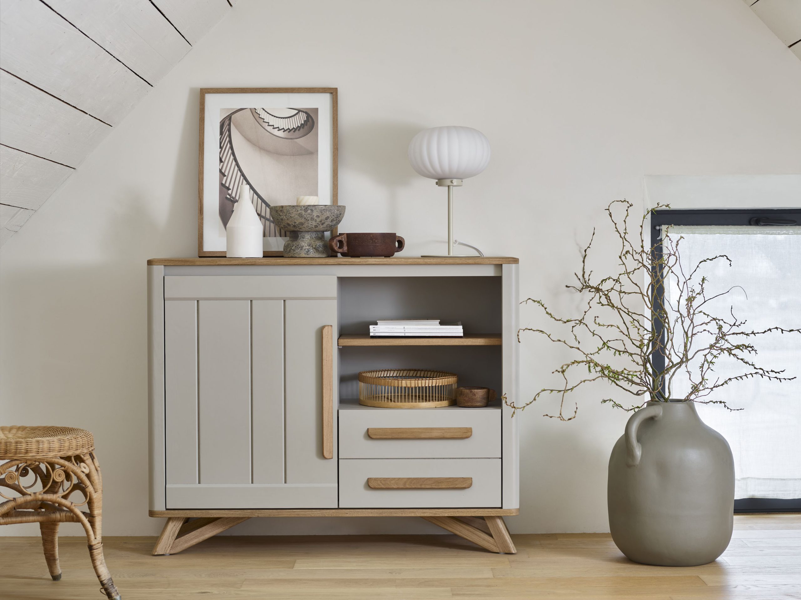 Collection de mobilier en chêne et bois laqué, bahut et petits meubles toutes dimensions, console, meuble TV, tables basses, tables de repas assorties. Coloris au choix suivant les collections. Echantillons et coloris disponibles en magasin.