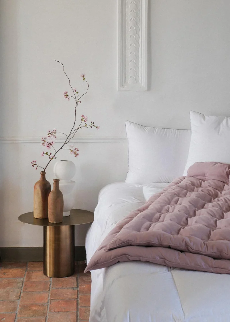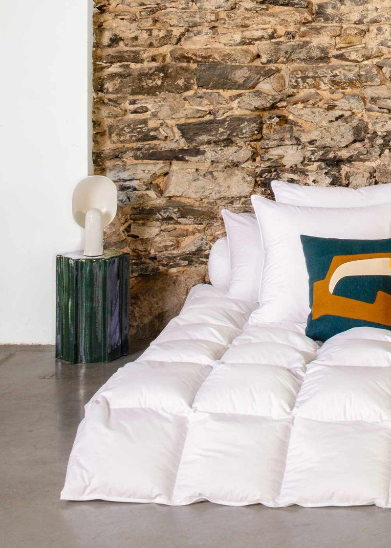 Plaid édredon Caresse 200 g/m² en duvet naturel, garnie en plumes de canard neuf de france,